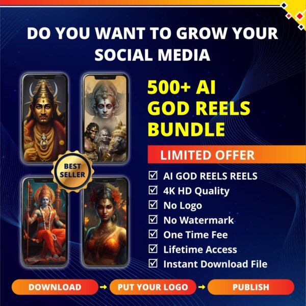 This bundle combines the power of AI-generated visuals, animations, and devotional content to create short-form videos around Hindu gods, mantras, and spiritual messages. Whether you’re looking to grow a spiritual Instagram page, launch a devotional YouTube Shorts channel, or simply share positivity with the world, these reels make it easy to stay consistent and impactful.